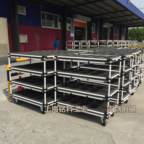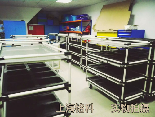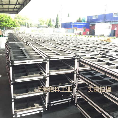 上海某公司,因產(chǎn)品需求,非標定制線棒臺車數(shù)百臺,金屬壁厚1.2mm,配產(chǎn)品擺放墊。